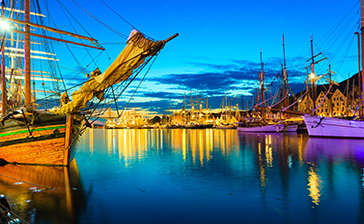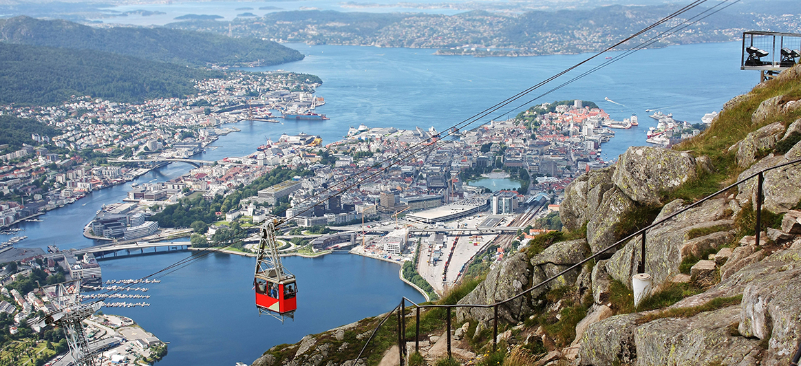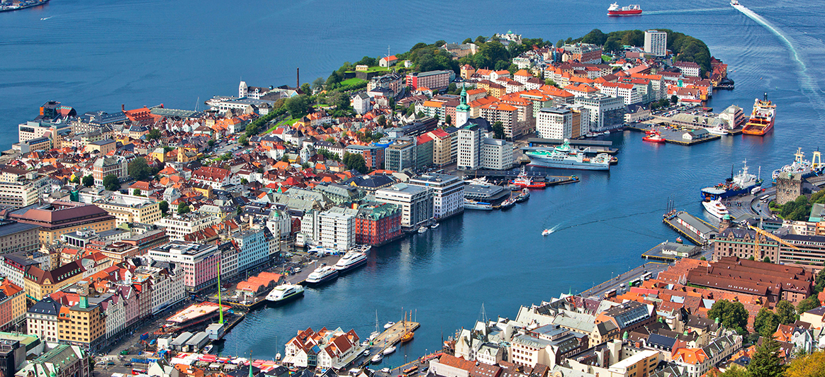 Attorniata da sette imponenti montagne, la città è stata fondata nel 1070 dal re Olav Kyrre e fu la prima capitale della Norvegia. Raggiunse l'apice della sua potenza economica nel Medio Evo, quando gli abitanti del centro storico di Bryggen tiravano le fila del commercio nel Mar Baltico. Passeggia per le strade in legno nel vecchio molo, con case di legno una accanto all'altra come in un collage colorato, nel porto di Vagen. Graziose boutique, taverne di pesce e un'atmosfera rilassata da località balneare nel più bel giro della città, vicino a alberi maestri in legno e pescherecci.
