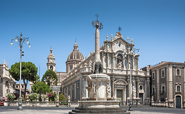 L'antica Catania fu fondata nel 729 a.C. da coloni greci di seconda generazione sull'isola. Fu distrutta dall'eruzione del vulcano del 1669 e rasa al suolo dal terremoto del 1693, ma fu ricostruita nel XVIII secolo con la lava grigia raffreddata dell'Etna. Gli abitanti hanno imparato da secoli a vivere in armonia con la "bestia" e costruiscono ostinatamente le loro case verso il vulcano, con materiali provenienti dalle sue viscere e raccogliendo i frutti del fertile suolo vulcanico.