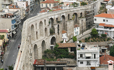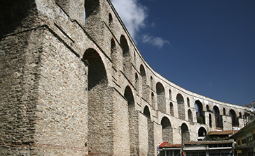 Le Kamares (le Arcate): l'emblema di Kavala sono le enormi arcate a doppio ordine dell'acquedotto, lunghe 270 metri e alte 26 metri che costituiscono l'ultimo tratto di una grande opera per la distribuzione idrica, lunga 6400 metri. Costruite da Ibrahim Pascià, vizir del sultano Solimano il Magnifico tra il 1520 e il 1530, durante il periodo della ricostruzione della città, sono state un'opera di vitale importanza. Impressionanti e imponenti, le Kamares sono un'opera enorme rispetto all'estensione del piccolo centro che avrebbero alimentato, per cui si presume che sullo stesso punto ci fosse un acquedotto più antico, sui cui resti sono state costruite le arcate. Oggi, a ridosso delle arcate, si possono vedere alcune piccole abitazioni di profughi restaurate che adornano questo monumento storico con i loro colori vivaci.