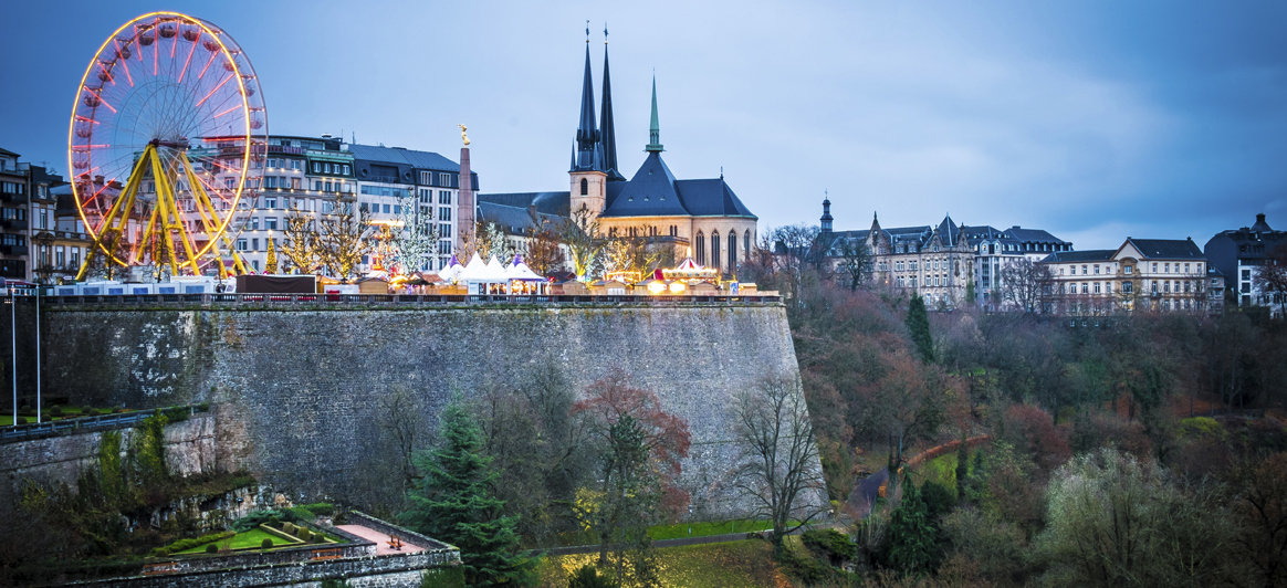 Chemin de la Corniche: la via pedonale più bella della città parte dalla collina del Bock e scende lungo i bastioni e le fortificazioni del Wenzelsmauer fino alla torre della Porta Tripla (Dräi Tier), offrendo una vista spettacolare sulla valle dell'Alzette, il pittoresco quartiere Grund e l'altopiano di Rham. Grazie a queste immagini panoramiche che si dispiegano davanti, questa via è stata chiamata "il balcone più bello d'Europa".