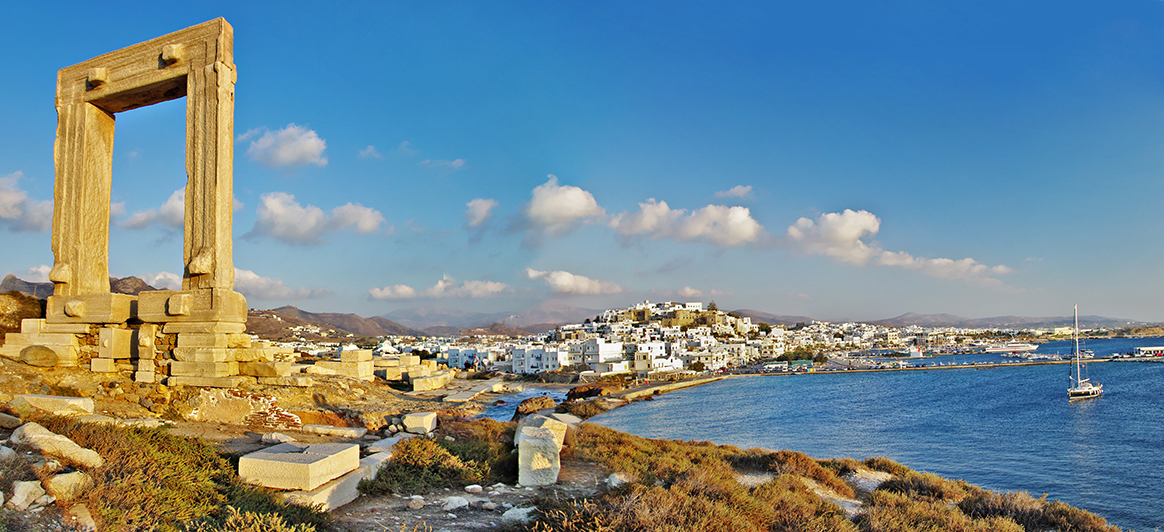 Portara: la gigantesca porta in marmo, l'unica parte rimasta dell'antico tempio di Apollo, si erge dal VI secolo a.C. vicino al porto, e rappresenta l'immagine emblema di Naxos che accoglie i visitatori. La plurifotografata Portara è il punto ideale per ammirare il tramonto.