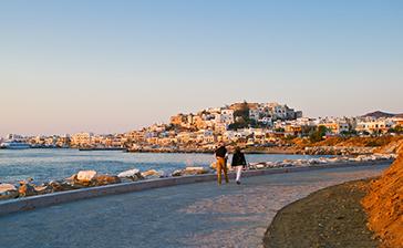 La Città Vecchia: Chora il capoluogo di Naxos si trova presso il porto dell'isola. È una cittadina isolana chiassosa, costruita ad anfiteatro su una collina, dominata dal Forte veneziano, eretto sul punto più alto. Intorno al forte, si è sviluppata la pittoresca città vecchia, con stradine strette adorne di portici, case in stile cicladico e dimore signorili veneziane con stemmi araldici. Visita anche il Museo Archeologico, ospitato in un edificio veneziano del XVII sec. In questo museo si trovano oggetti e manufatti risalenti al primo periodo del Neolitico fino all'epoca paleocristiana.