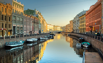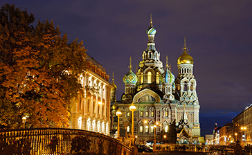 Chiesa del Sangue Versato: costruita nel punto in cui fu assassinato lo zar Alessandro II, questa imponente chiesa ebbe come modello la chiesa di San Basilio a Mosca e richiese 24 anni perché ne fosse completata la costruzione (1883-1907). Le pareti interne sono decorate con 7.000 m2 di mosaici, opera di 30 artisti.