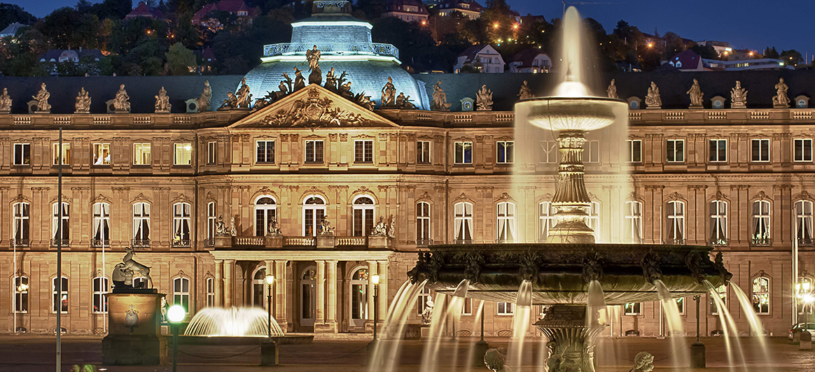 Schlossplatz: Punto di ritrovo preferito per i locali soprattutto durante i mesi estivi, la maestosa e centrale Piazza del Palazzo, è il luogo dove batte il cuore di Stoccarda. Da un lato si trova il barocco Palazzo Nuovo (1807), l'ex residenza reale del duca Carlo Eugenio di Württemberg, che oggi ospita gli uffici governativi.
